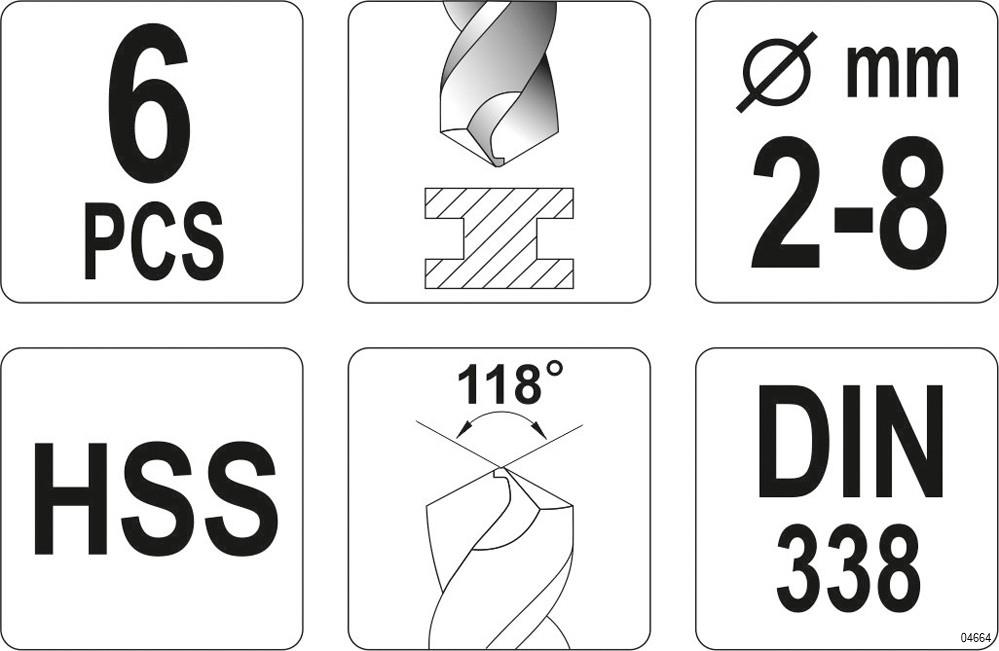 YATO Drill Bit Set is ,made of high-quality HSS high-speed steel with a cylindrical handle. These drill bits are made with a reinforced cutting edge and a point angle of 118 °. Intended for use in industry and crafts, for precise drilling in steel, cast iron, metals and plastics.