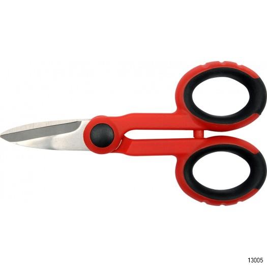 YATO Electrician Scissors has blades designed for cutting thin wires, insulating tapes, heat shrink tubes, etc. It is made of stainless steel with the symbol 3Cr13SS. The blade is hardened to 52-56 HRC. Most of the scissors are covered with a layer of insulating material. The handles are additionally covered with TPR inserts. Overall length 140 mm.