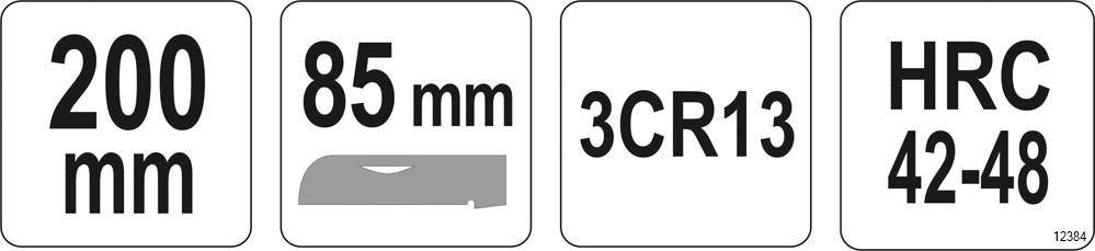 YATO Electrician's Knife has a blade of 80 mm. It is made of stainless steel with the symbol 3Cr13SS. The blade is hardened to 422-48 HRC. Most of the scissors are covered with a layer of insulating material. The handles are additionally covered with TPR inserts. Overall length 200 mm.