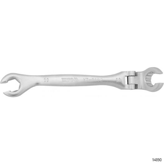YATO Flexible Flare Nut Spanner is a professional flare wrench with flexible head. Allows to reach difficult places. It has a articulated joint at 12 point head and ring for nuts in sockets. It is used on hydraulic, fuel and brake lines. Ergonomic handle for comfort of work. Made with Chrome Vanadium steel CrV6140.