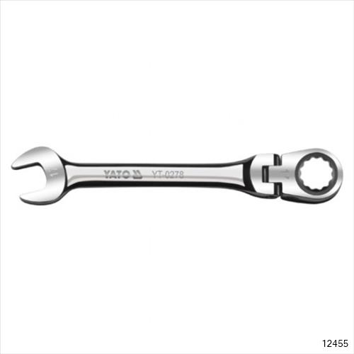 YATO Flexible Ratchet Combination Spanner is a ratchet ring spanner made of high strength chrome vanadium steel. This tool is used for connecting and disconnecting a threaded connection by tightening or untwisting bolts, nuts and other parts. At one end of the key there is an open-end, and at the other, a union head with a hinge. Both heads are the same size in these spanners. For household and professional work.