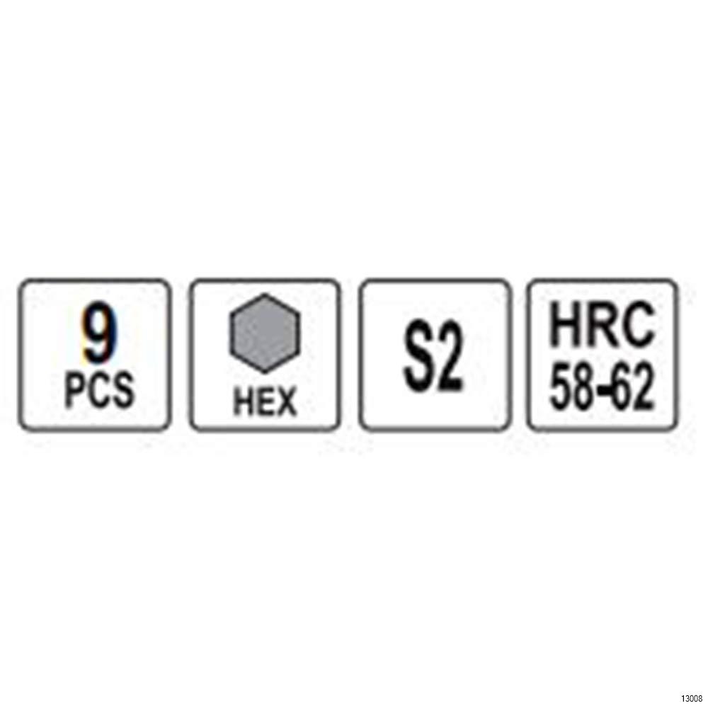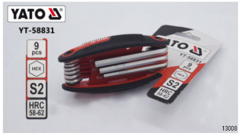 YATO Folding Hex Key Set is made using S2 steel with a hardness rating of HRC 58-62. It has a non slip grip with easy storage since it can be folded in.