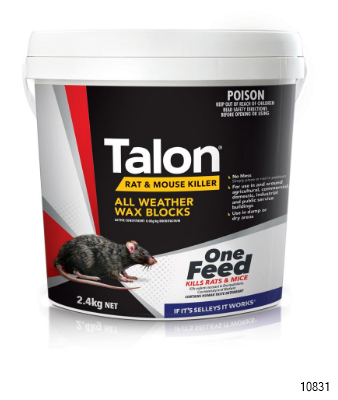 Talon Rat & Mouse Killer All Weather Wax Blocks use the world's most effective rodenticide to kill rats and mice in just one feed. With the unique wax block formulation, Talon All Weather Wax Blocks are an extremely versatile and robust option that are perfect for damp or dry areas and can easily be nailed to surfaces.