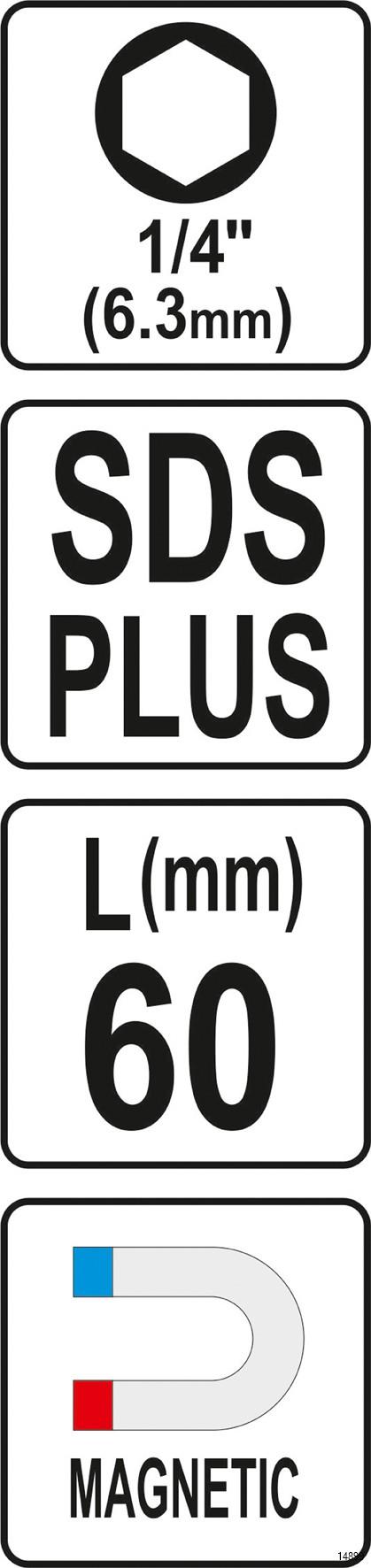 YATO Hex Socket Shank Screwdriver is an SDS plus-HEX adapter made of 40Cr steel and additionally the surface has been oxidized. It has a length of 60 mm.