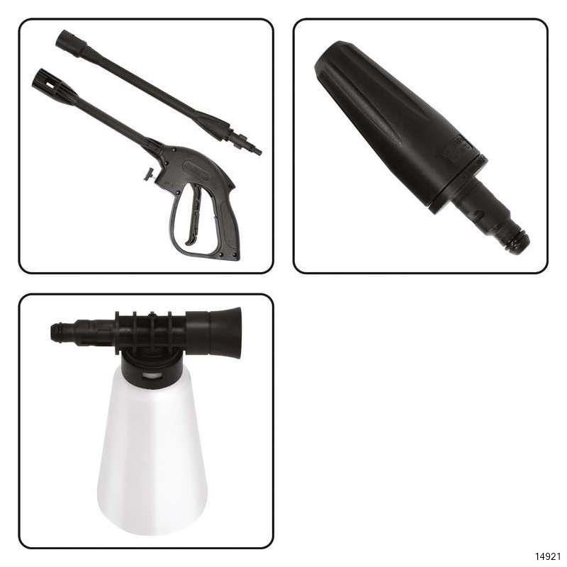 - In the set: a gun with an extension, turbo tip, foam sprayer