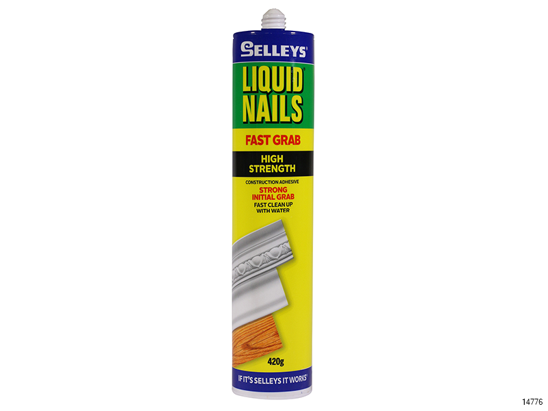 Selleys Liquid Nails Fast Grab is a high strength construction adhesive that provides strong initial holding power. The water-based formulation is low odor and allows for easy water clean up.