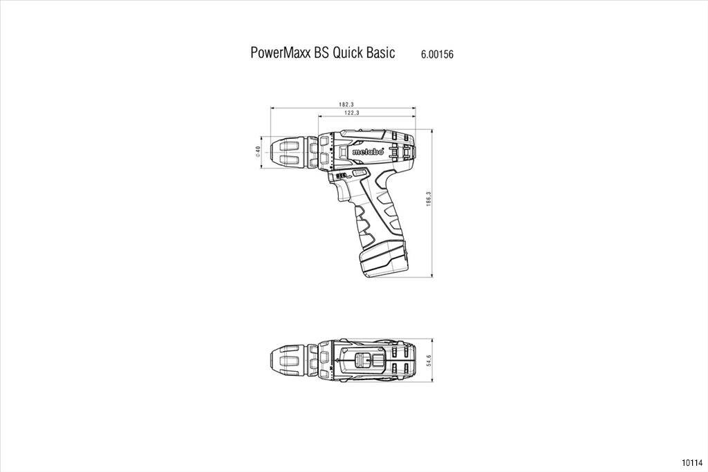 BS Quick Basic is one of the smallest and most compact 10.8v drill/screwdriver in the market. The 10mm quick chuck can be removed to reveal a hexagonal recess in the spindle for which you can use screw driver bits. This reduces the overall length to 122mm.