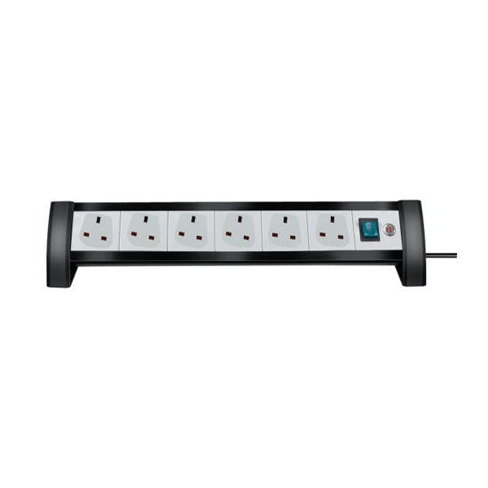 Premium-Office-Line 6-way Brennenstuhl extension cord in black / light grey and 3m cable impresses with its quality and safety in all areas. Its stylish, stable casing consists of highly break-proof, polished polycarbonate. It's extra protected against contact has the following properties too: