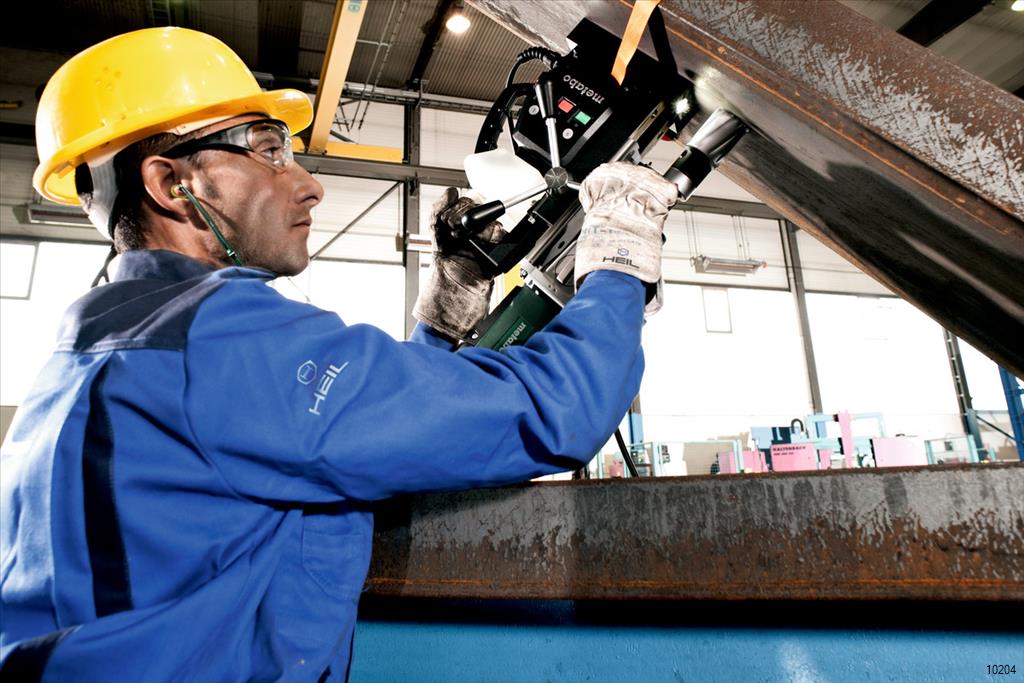 Drill with a tough gear box and a powerful 1.2Kw Marathon motor is able to cut up to an impressive Ø 50mm using HSS or TC core cutters and 20mm with a spiral drill. Thanks to the oil filled two speed gear box large diameter cores can be drilled and with the unique Metabo VTC electronics constant speed is maintained under load. The Mag 50 has both clockwise and anti-clockwise rotation making it ideal for thread tapping.