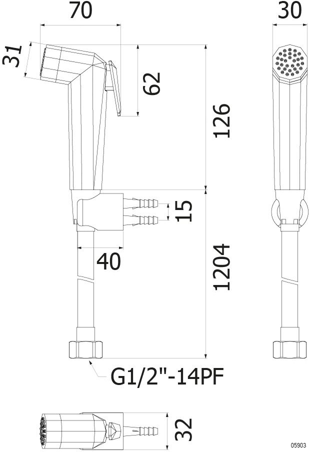 HOY RINSING SPRAY (MUSLIM SHOWER) PLASTIC WITH SS HOSE FXHOY-0072AS