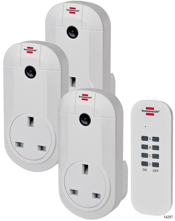The remote control set from Brennenstuhl with three remote control receivers and a remote control in white distinguishes itself through its quality and safety in all areas.