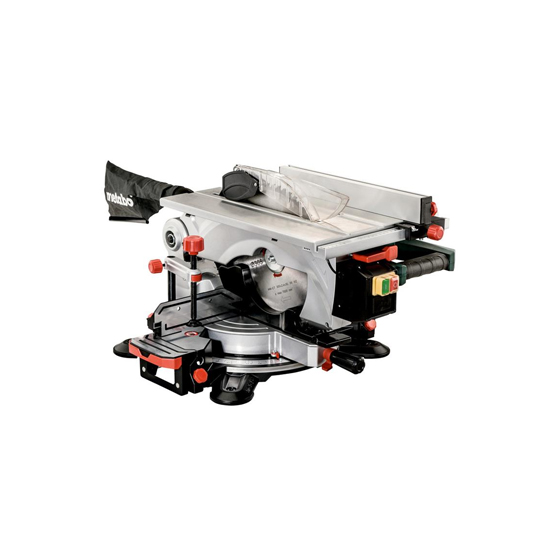 Cross-cut and mitre saw with additional table circular saw function for straight cuts and quick changeover from crosscut to table operation. Compact light-weight saw, ideal for mobile use with material clamp for secure fixing of the work piece from the top or front. Restart protection: prevents unintentional start-up after power supply interruption.