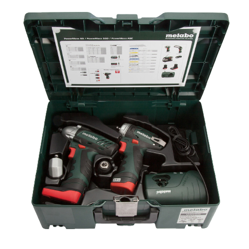 Consists of the PowerMaxx BS Quick Cordless Drill / Screwdriver and the PowerMaxx SSD Impact Screwdriver. Comes with a quick-action keyless chuck and quick-action angle adapter. 2 x Li-Power Batteries, one is 10.8V 2.0Ah and the other 10.8V 4.0Ah. Batteries are interchangeable between machines. Combo Set comes with a LC40 Charger and MetaLoc II Carry Case.