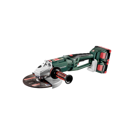 World's first large angle grinder (Ø 230 mm) with battery pack operation for powerful cutting and roughing independent from the mains power. 100% compatibility with the 18 Volt class: powerful 36 Volt operation with two 18 Volt battery packs from Metabo and the idlest range of application thanks to extremely large cutting depth of 77 mm.
