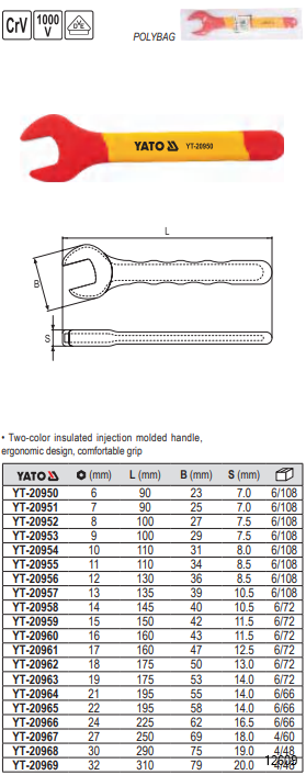 YATO INSULATED OPEN END WRENCH 6MM-19MM