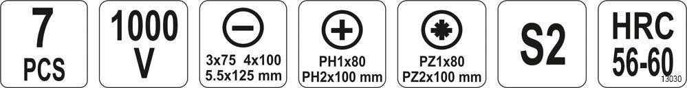 YATO Insulated Screwdriver is a a set of 7-piece with VDE insulation, made of durable S2 steel with a hardness of HRC 56-60 .