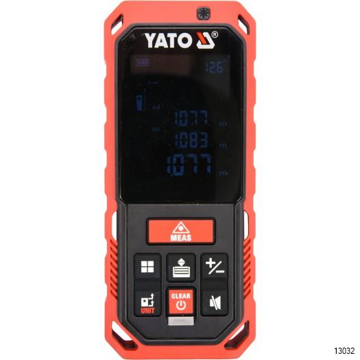 YATO Laser Distance Meter is a rangefinder for quick and precise measurements of distances.It has a resistant screen with a protection class of IP65. It has a power supply of 3 AAA NiMh batteries which is charged via USB and it has a battery status indicator. It has a reinforced housing and a short lanyard for easy handling.
