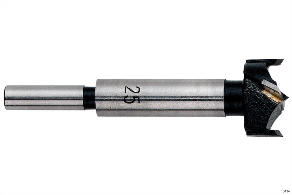 METABO Carbide Precision multi-spur machine bit, similar to DIN 7483 C with centering point, 2 sharp rough cutters and 2 main cutters made of carbide steel. For professional use and non-splintering drilling in veneered wooden boards as well as all natural hard and soft wood types.