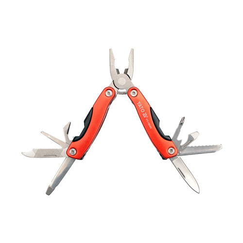 YATO Multi Knife 9 in 1 is a pocket knife with multifunctional tools designed for tourists, anglers, hunters, and DIY enthusiasts. It will work well on trips as well as during minor housework. This item is made of stainless steel with the symbol "420" and aluminum.
