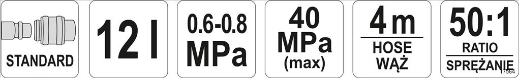 - Pump pressure at 8 bar compressed air: 300-400 bar