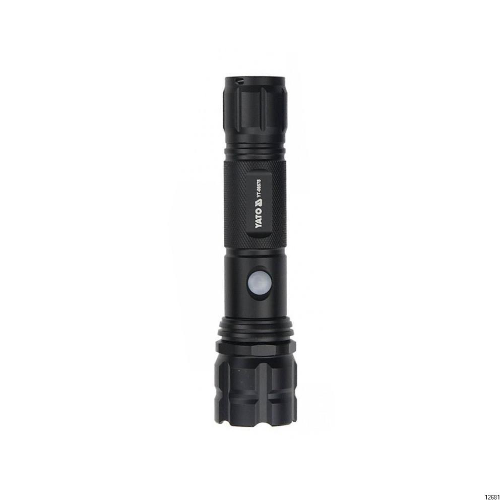YATO Rechargeable Flashlight is equipped with modern and efficient POWER LEDs from the renowned CREE brand, as well as a comfortable hand strap and rubberized button.