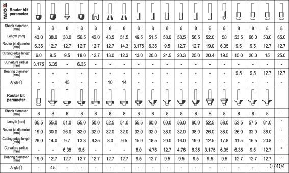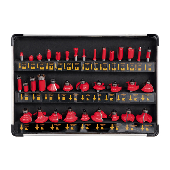YATO Router Bit Set has precisely made, high-speed wood cutters with 8 mm shank. The heads equipped with profiled cutting inserts, made of YG6X silicon carbide. It is silver soldered with dimensional tolerance of 0.08 mm. The edge processing cutters are equipped with bearings to facilitate the guidance of the milling machine. A set of 35 cutters, collected in a functional case with a glass for easy inspection and quick selection of the right tool.