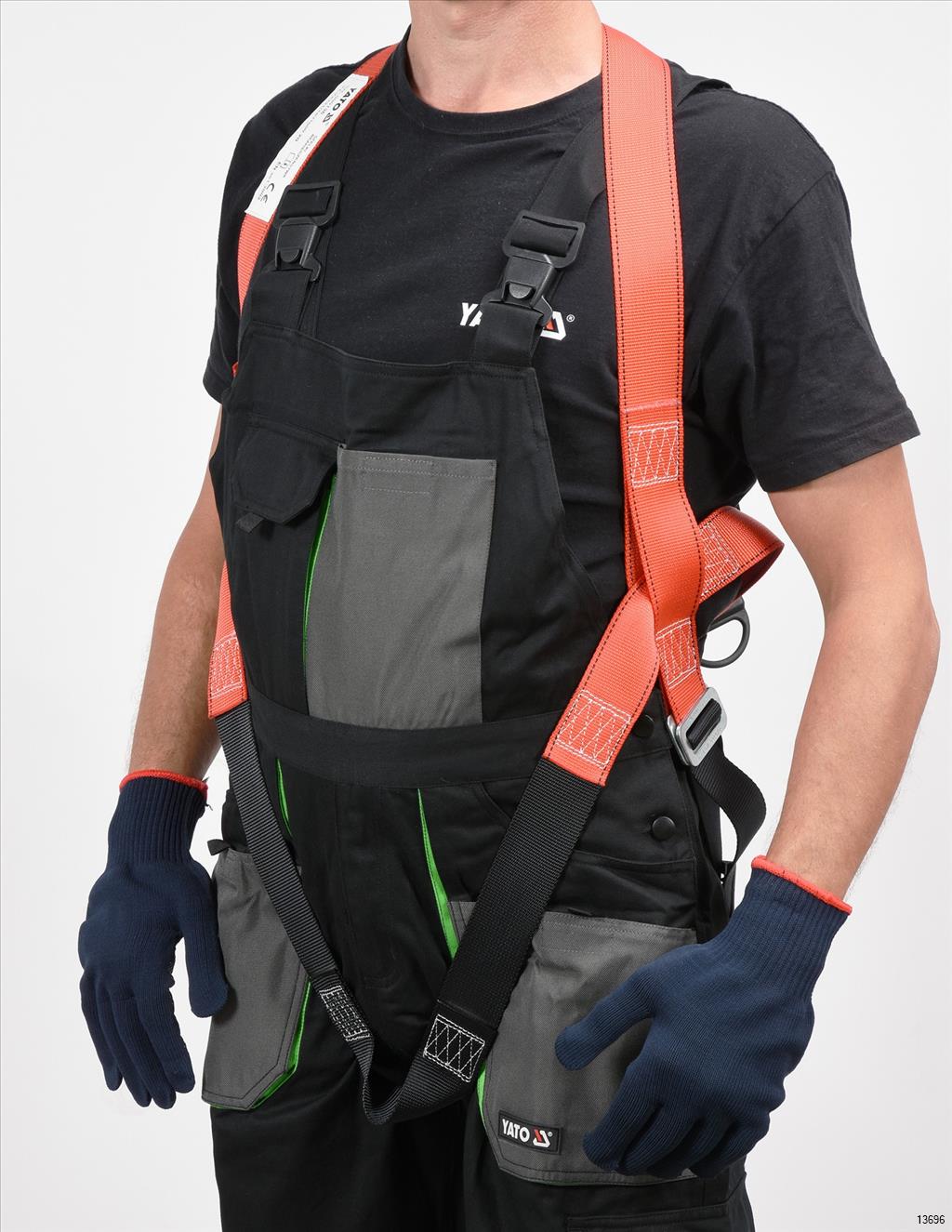 YATO Safety Harness is a system designed to protect people against falling from a height. Properly fitted harness must fit tightly to the torso and thighs so that, together with the dedicated attachment point, they can evenly distribute the forces acting on the body during a fall.