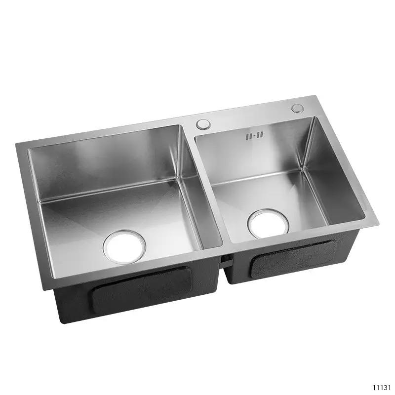 MEDCA SS304 SINK DOUBLE BOWL (780MM X 430MM) WITH DRAIN & PIPES NO.7843A