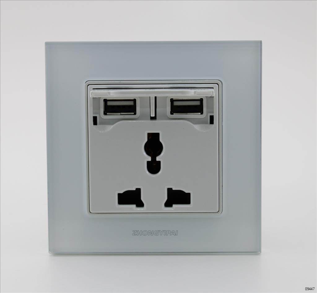 FIKO/ZHONGYIPAI GLASS UNIVERSAL SOCKET 13A WITH 2 USB F71-BB-0028