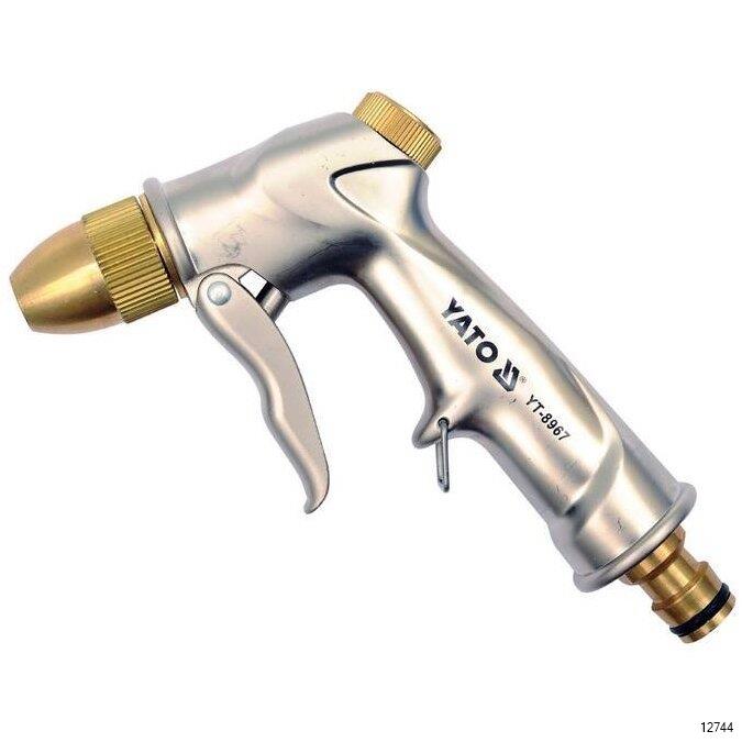 YATO Adjustable Water Spray Gun is constructed of brass and is ideal for watering your garden. The materials used ensures a long service life. The gun is perfect for people who value otherness and quality. It comes with flow regulation and has a continuous operation mode.