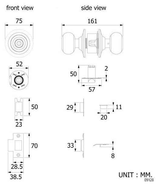 VRH CYLINDER KNOB DOOR LOCK SET WITHOUT KEY