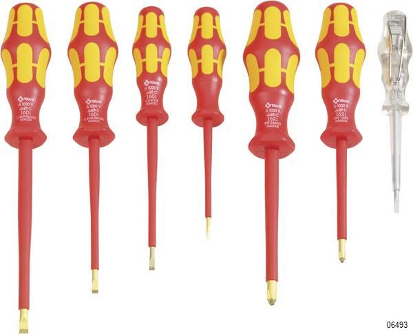 7-piece screwdriver set with individually tested, insulated screwdrivers as per IEC 60900. Individual testing in a water bath at 10,000 volts so as to ensure safe working at the permitted voltage of 1,000 volts.