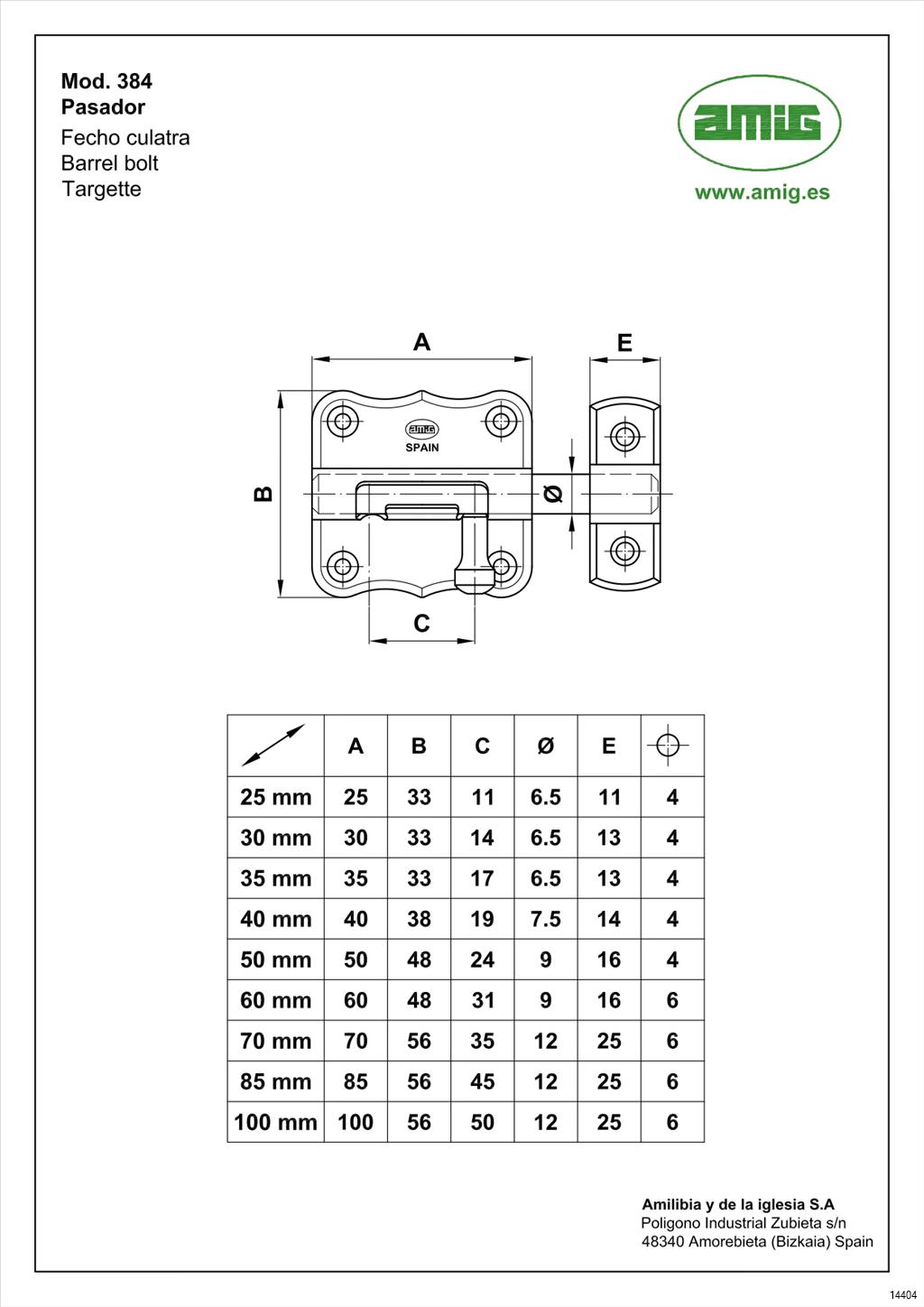 AMIG BARREL BOLT 384 ST. STEEL DPY