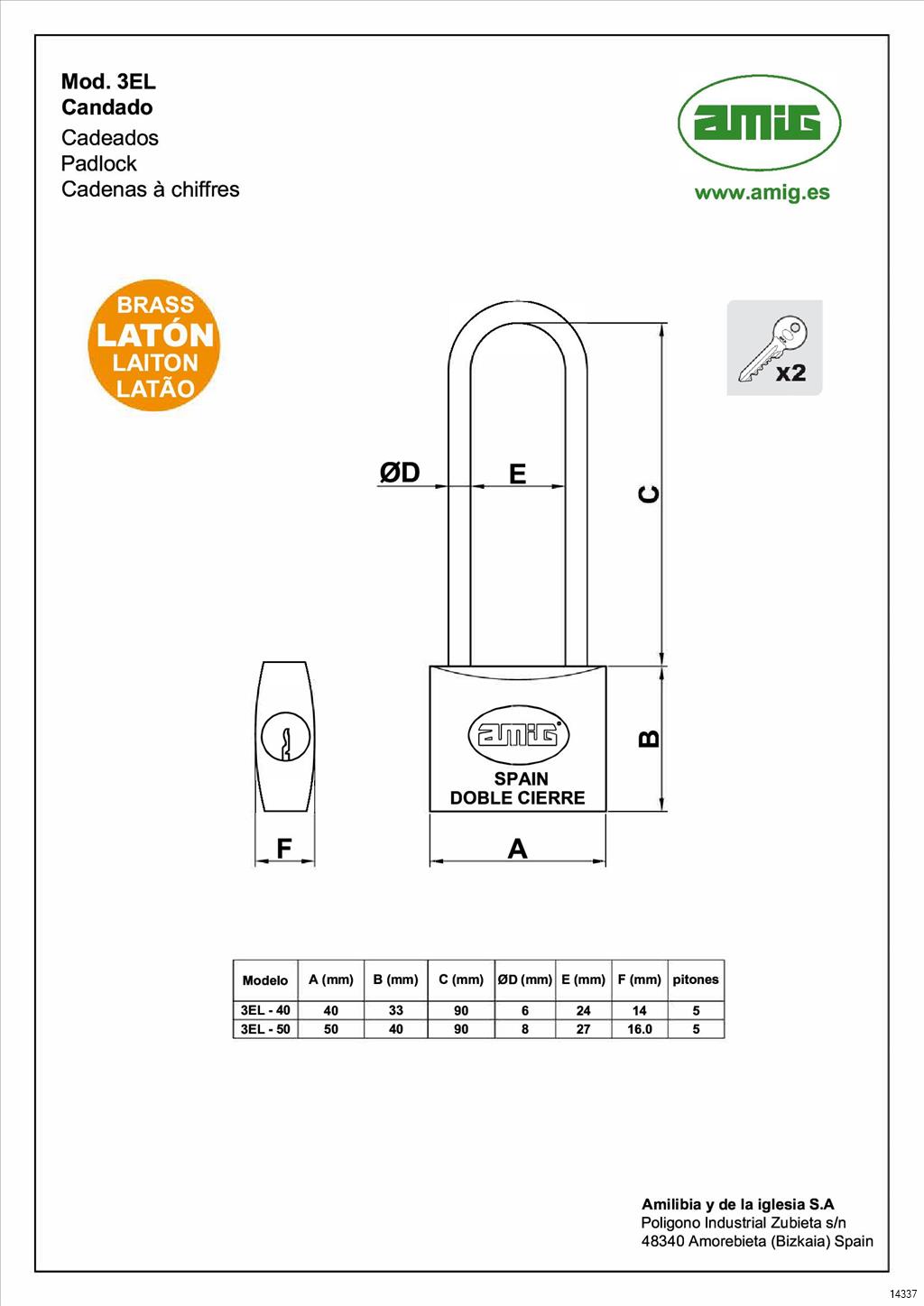 AMIG BRASS PADLOCK EXT.LONG SHCKL DPY