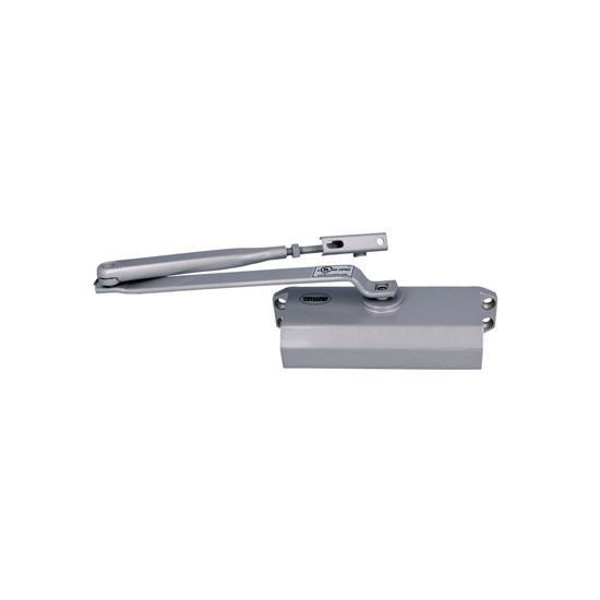 Door closer with adjustable placement at forces 2, 3 and 4.