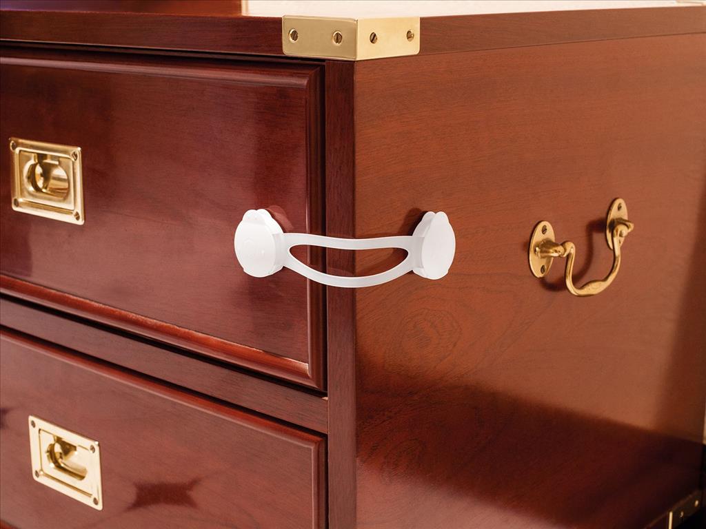 Long multipurpose safety lock that prevents the opening of closet doors, refrigerators and toilets.