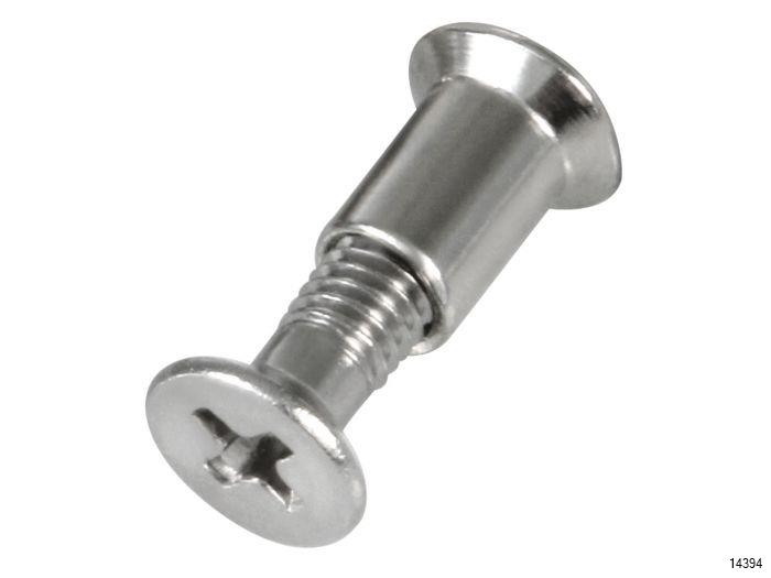 18/8 stainless steel screw and chrome-plated brass bushing.