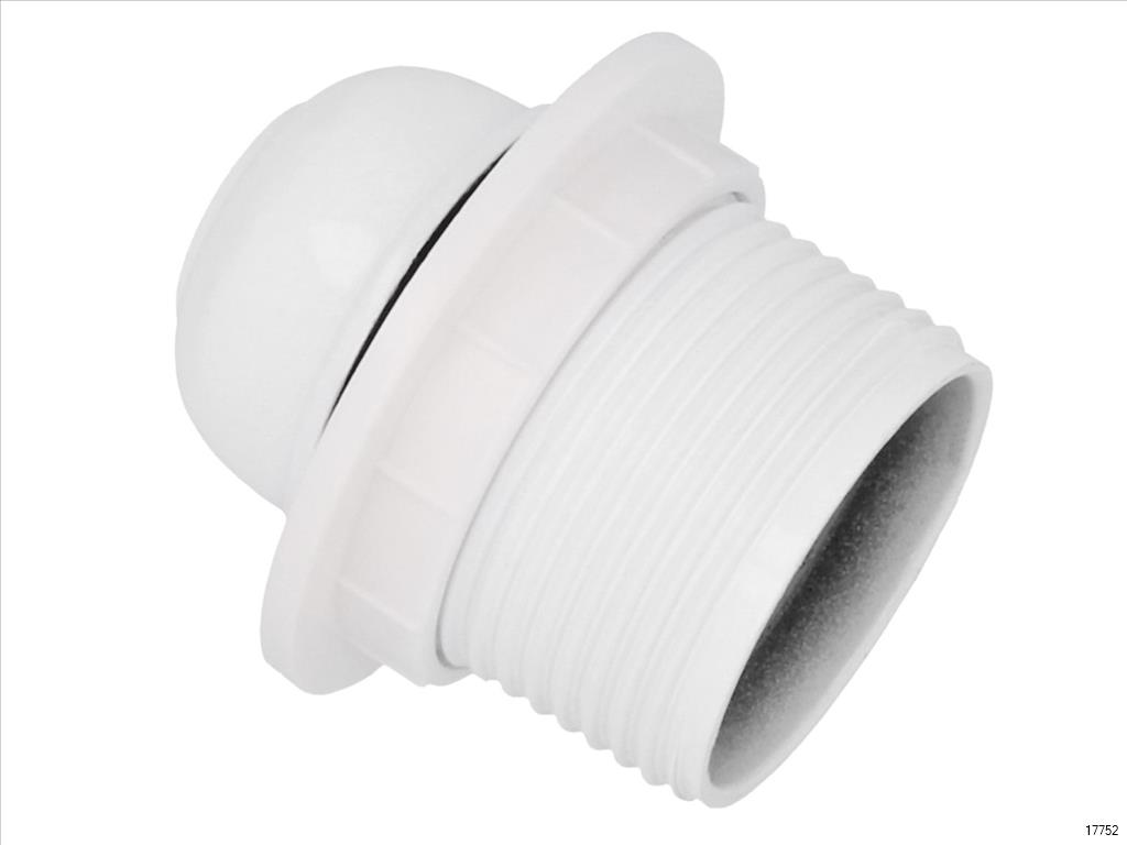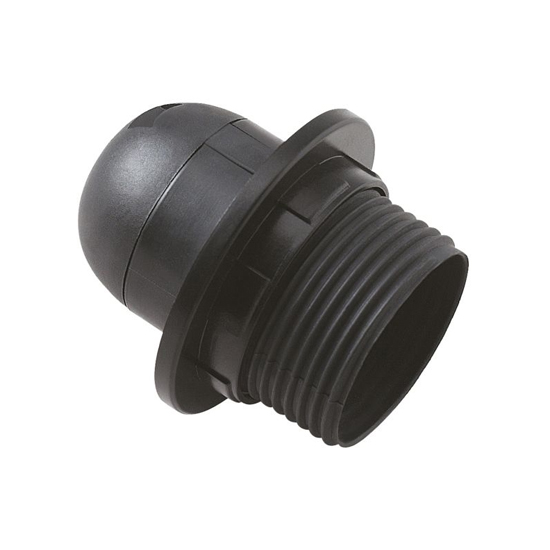 Thermoplastic lamp holder with threaded body, stopper and washer for bulbs with E27 thread.
