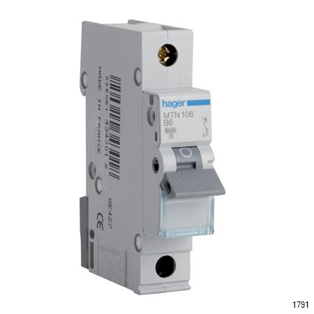 HAGER MCB C6 1P is an electrical switch that is automatically controlled to protect an electrical circuit from damage caused by excess current from overload or short circuiting. The central function is to interrupt current flow until a fault has been found.