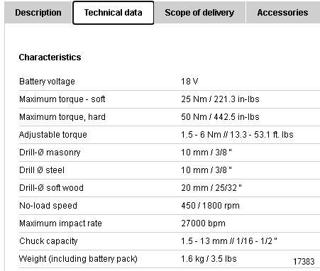 - Battery voltage 18 V