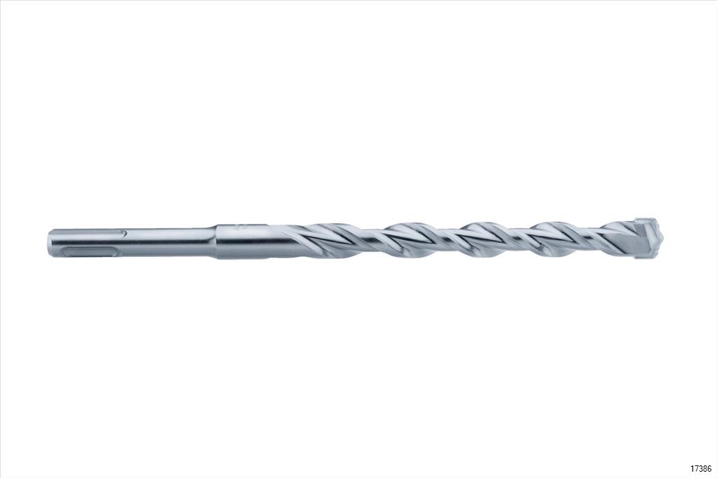The highest drill speed thanks to reduction in friction and improved impact transmission thanks to the special cutting geometry on the chisel-shaped drill head.. Stable and durable centering point for high-precision spot-drilling. The 2-spiral helix with its helical geometry with reinforced core ensures quick delivery of bore dust and maximum breakage resistance.