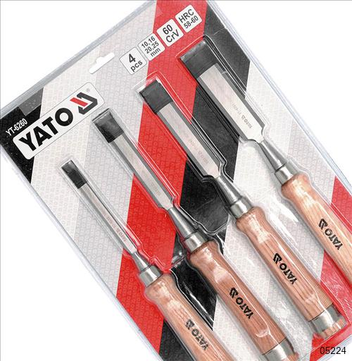 YATO Chisel Wood Flat Set has carpentry chisels with a classic wooden handle adapted to impact. The blade is made of CrV60 steel, hardened to 58-50 HRC. The edges of the blades are milled, the handle is reinforced with a metal clamp. The set includes chisels with a width of 10, 16, 20 and 25 mm.