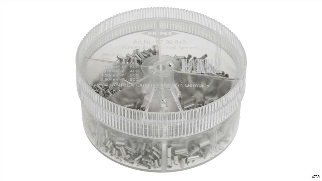 KNIPEX Assortment Box is a handy and transparent dispenser box with rotating lid and an opening to remove individual end sleeves (ferrules).