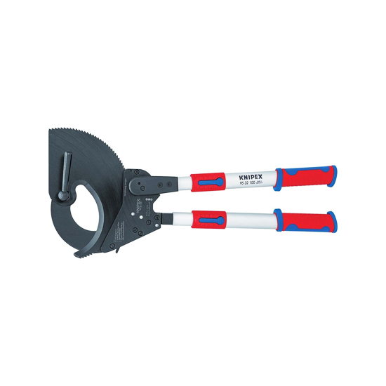KNIPEX Ratchet Auction Cable Cutters with telescopic handles are designed for cutting copper and aluminum single conductors as well as multi-stranded cables; including cables with hard rubber or plastic sheaths. They are also suitable for cables with iron sheath reinforcement.