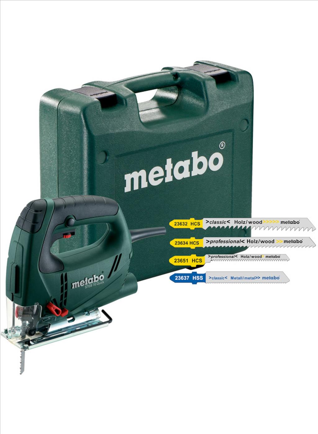 Metabo Quick system for changing the blade without tools. Lowered blade guide for precise cuts. Bow handle with non-slip softgrip surface. Deactivatable chip blower for good visibility of the cutting area. Vario electronic system (V) to work with speeds adapted to the materials. Possibility to connect an all-purpose vacuum cleaner.