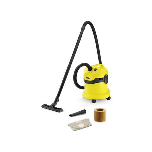 The Kärcher WD 2 Wet & Dry Vacuum Cleaner is specifically designed for the car, garage, garden and other tasks too tough for your indoor vac. The WD 2 has a 1000w motor to deliver extreme suction power for the most demanding outdoor cleaning tasks. The intelligent cartridge filter and floor tool enable you to seamlessly tackle dry debris, dust, glass, or even liquids, without the inconvenience of work interruptions to change the filter. With the compact size and shape, on-board storage and time-saving accessories the WD 2 is ideal for storing in your garage for the tough jobs when you need it. The WD 2 comes equipped with a durable 12L plastic container, 1.9m suction hose, two suction tubes, a cartridge filter and a wet to dry floor tool.