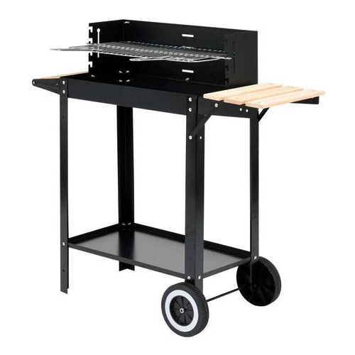 - a wooden side shelf and a spacious bottom shelf for plates, barbecue utensils, etc.