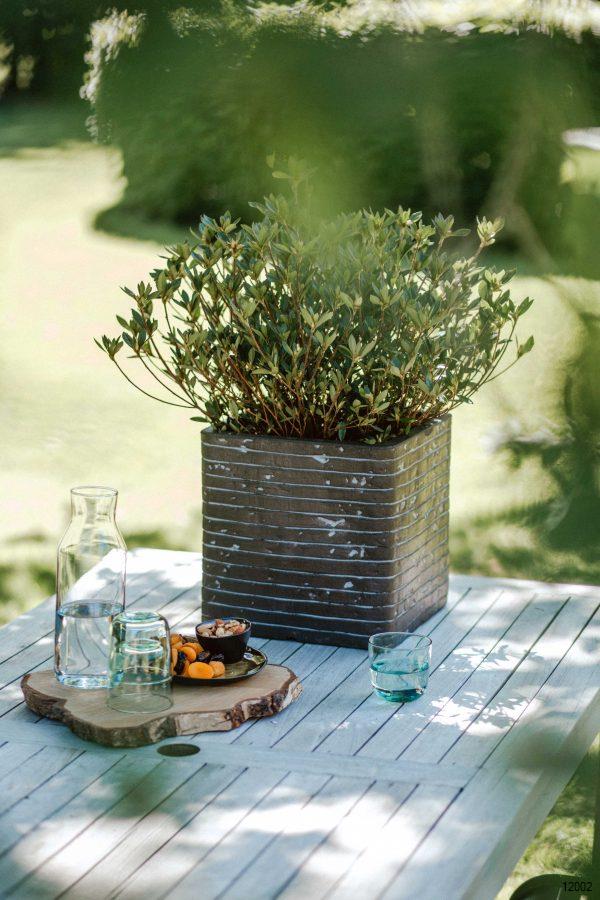 The broad lines of Row flowerpots create a calm yet playful effect, both indoors and outdoors. This striking pattern enhances the appearance of the plant.