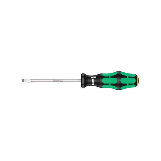 High quality WERA Slotted screwdrivers is Multi-component Kraftform Plus handle for pleasant, ergonomic working that makes blisters and calluses a thing of the past. The tips of the Wera Laser tip screwdrivers are microscopically roughened by laser beams. This rough surface literally bites into the head of the screw.