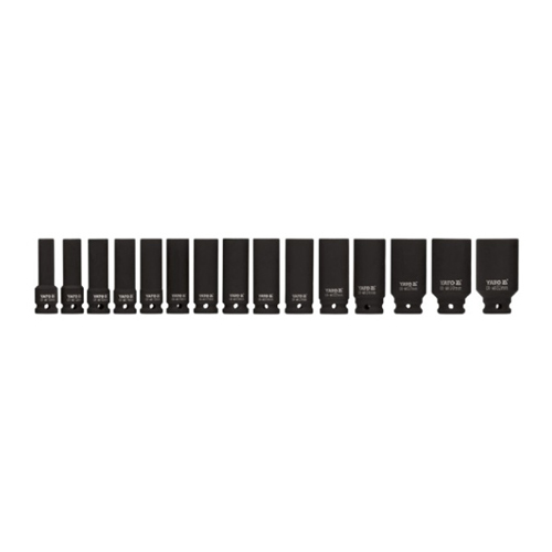 YATO long impact sockets - a set of 15 sockets.